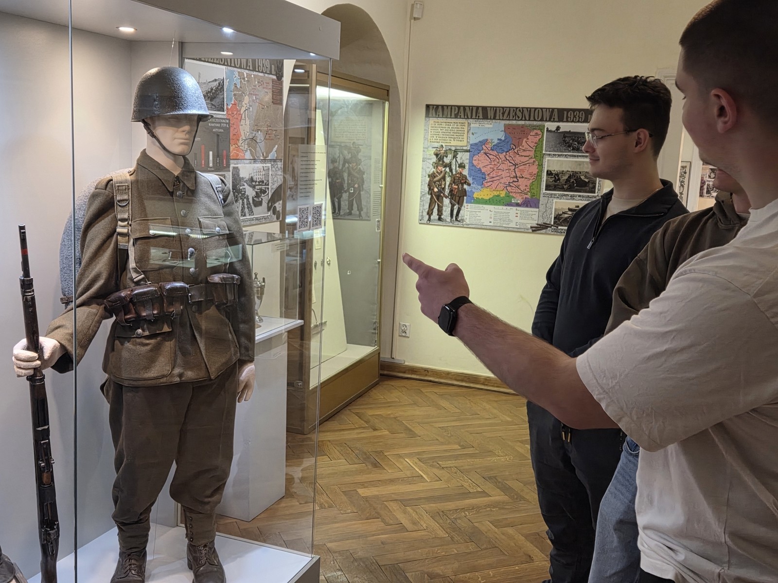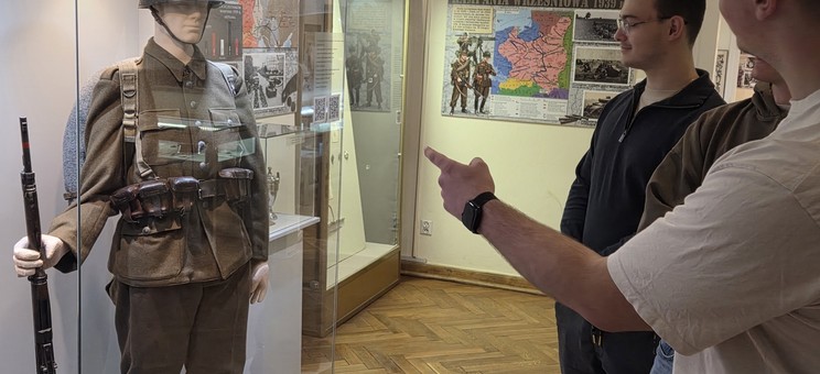 Podczas pobytu w Muzeum Okręgowym studenci mieli możliwość zwiedzenia dwóch wystaw okolicznościowych: „Żołnierz polski 1914–1945. Kolekcja Jana Partyki” oraz „Wojskowy szyk, czyli jak na defiladzie”, przygotowanych przez pracowników Muzeum Okręgowego w Rzeszowie.